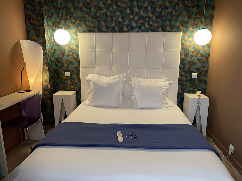 The air conditioned rooms of Mirano Hotel have a 1970s-inspired decor Each room is equipped with a TV and storage space